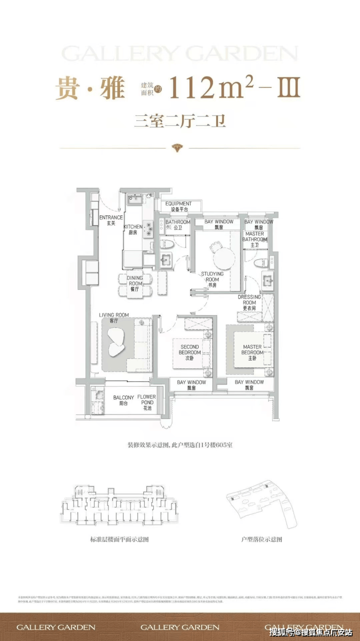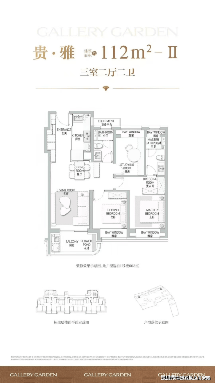 项目舍弃了传统逼仄的百平三房,将最小面积提升到了建面约112㎡,而这12个平方的提升,让整体户型的空间尺度感达到了新的高度。