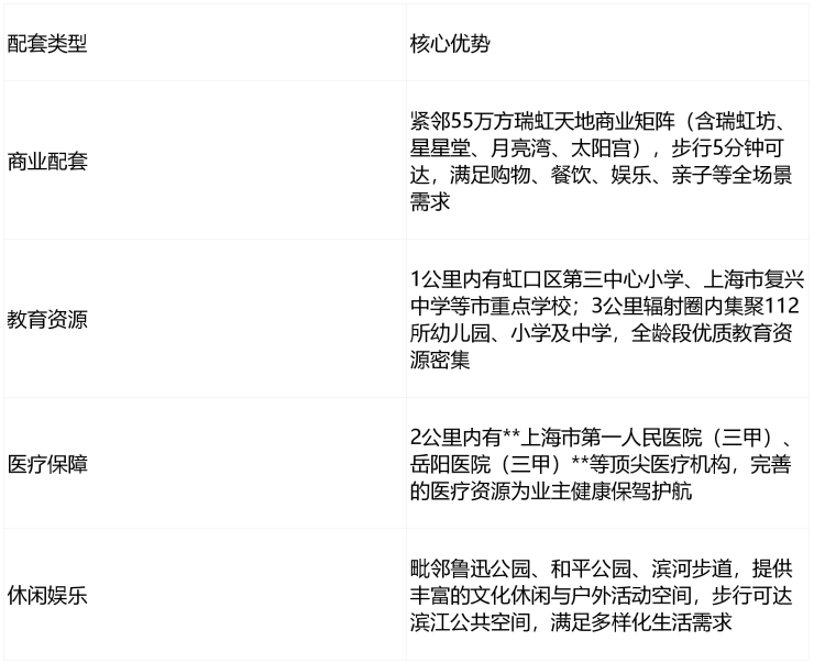 收藏价值:作为瑞虹新城最后一块住宅用地,承载区域30年发展精华,是内环内不可复制的"孤品资产",收藏价值极高