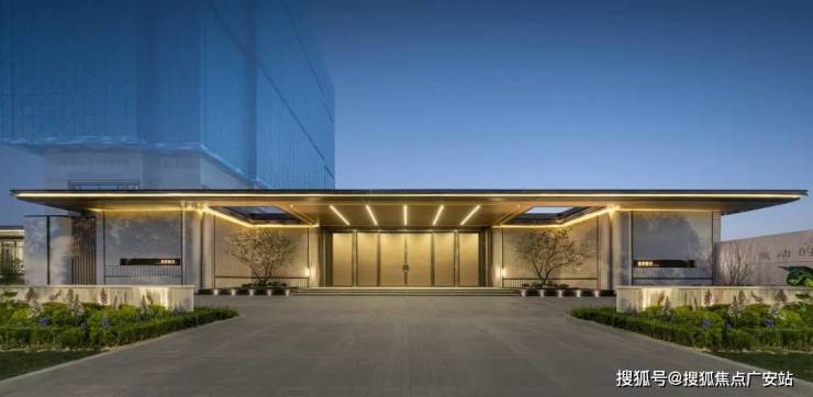 立面方面,汲取现代轻奢法式的白金美学灵感,叠加大面玻璃,打造出光影灵动的对称式金色画框立面。