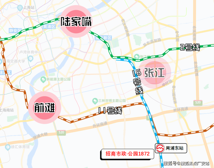通过16号线,可实现1站换乘11号线,直通迪士尼乐园、前滩、世博文化公园等知名上海文旅商业地标;2站可连接13号线华夏中路直抵张江;3站龙阳路,可换乘2号线、7号线、18号线以及磁浮线畅行上海。