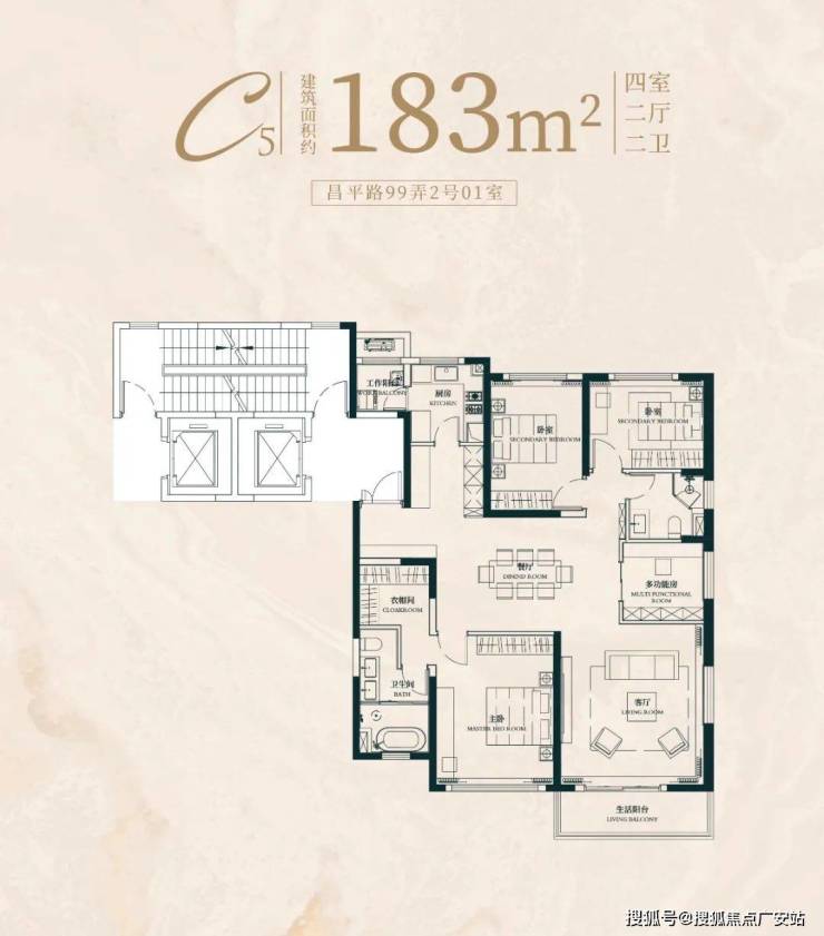 建面约183㎡4房2厅2卫户型: