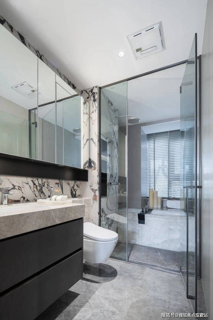 你可能想象不到,在尚云赋房间里几乎没有一面墙是乳胶漆,要么是定制墙布,要么是岩板,就连卫生间都用一整块经典宝格丽岩板,拼接缝都处理得非常精致.