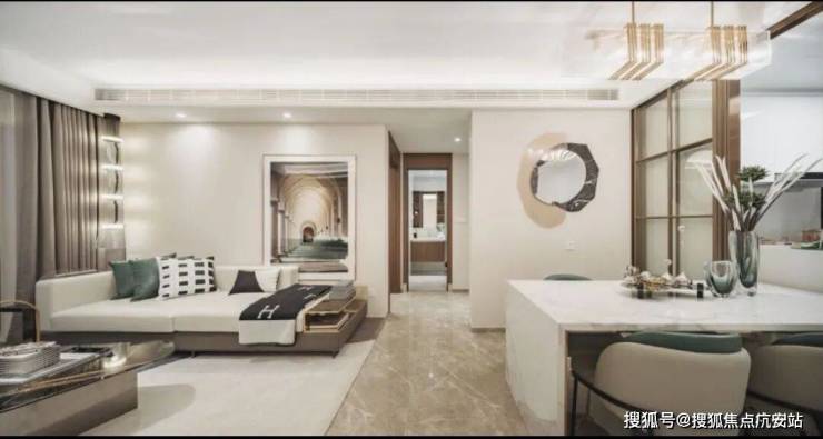 客餐厨一体化设计,外连景观阳台,保证室内充足的采光与通风,无隔断的设计,增加了空间使用率,也满足了家庭成员之间更多的互动与交流需求。