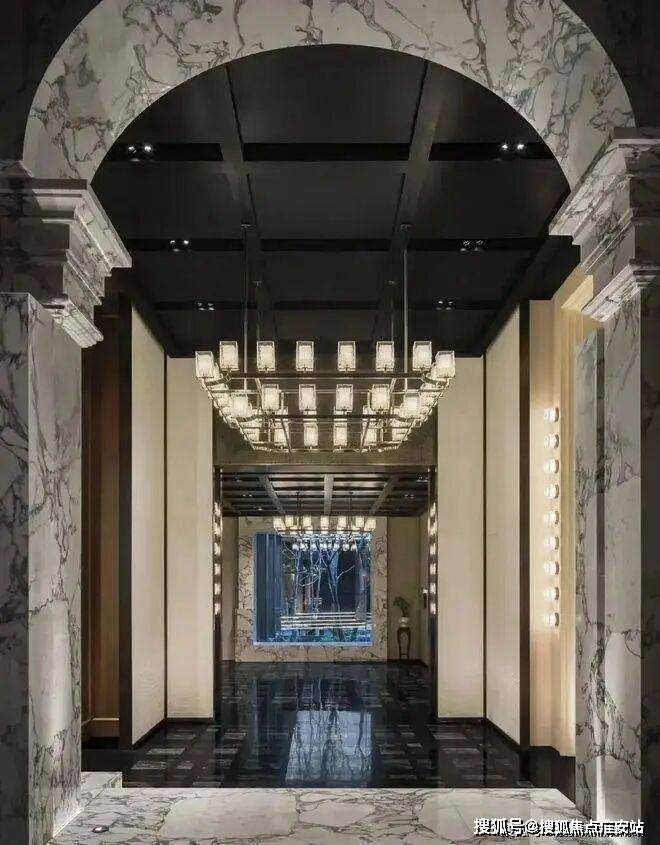 由外而内,用料十足,公区打造光石材就用了十几种,室内空间配置更是拉满。