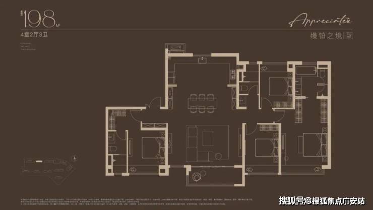 172-198㎡ 4 房大平层:双套房 + 中西双厨,楼王户型