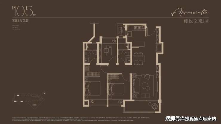 105㎡ 3 房 2 厅 2 卫:三开间朝南,总价约 420 万起