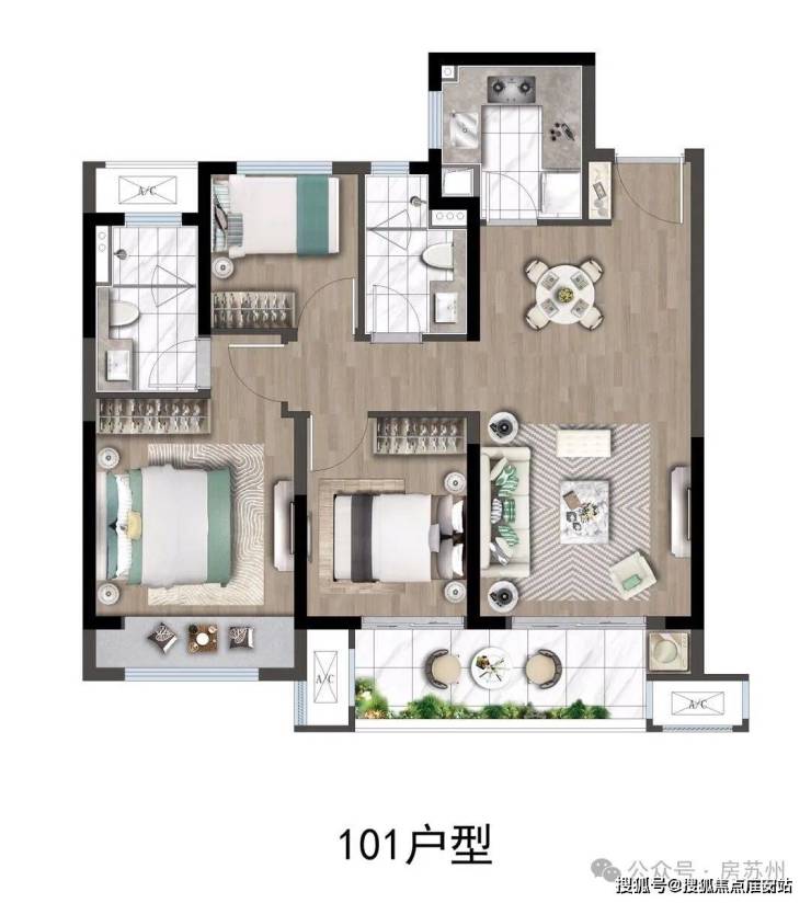 建面约101㎡全能三房