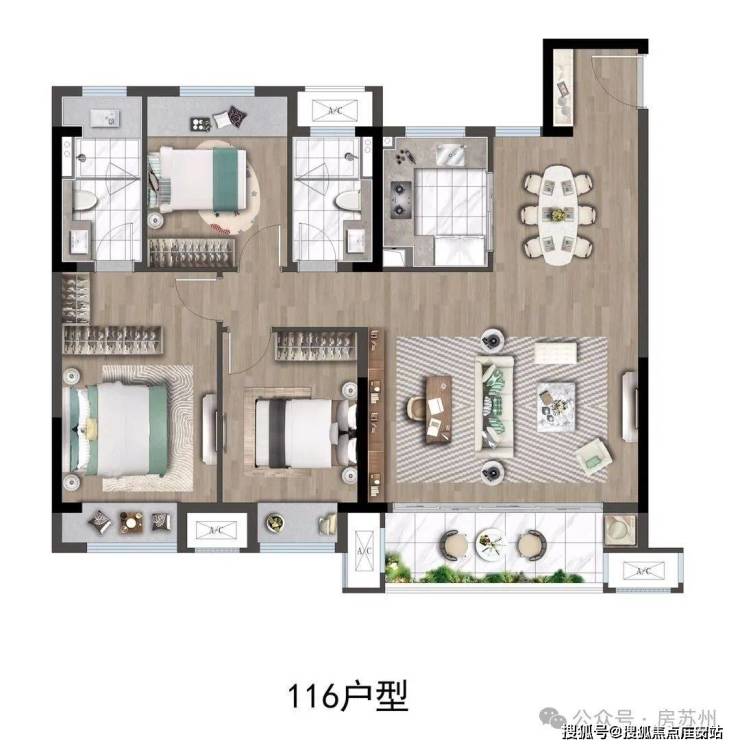 建面约116㎡灵动3+1房