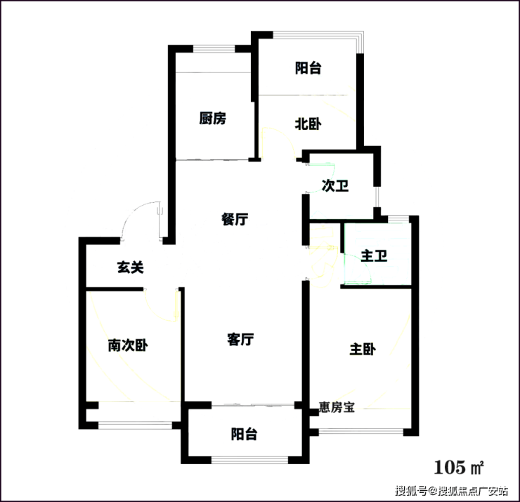 小区西侧和北侧则分布的是洋房的103㎡左右户型和小高层的120㎡左右三房户型。这两个户型主要是为了满足中小套要求,同时给到的产品配置并不低,比如前面提到的层高和梯户比等等。而且因为小区北侧同样是绿地+河道,南侧是绿地,所以南北两侧的小户型同样享受景观视野。