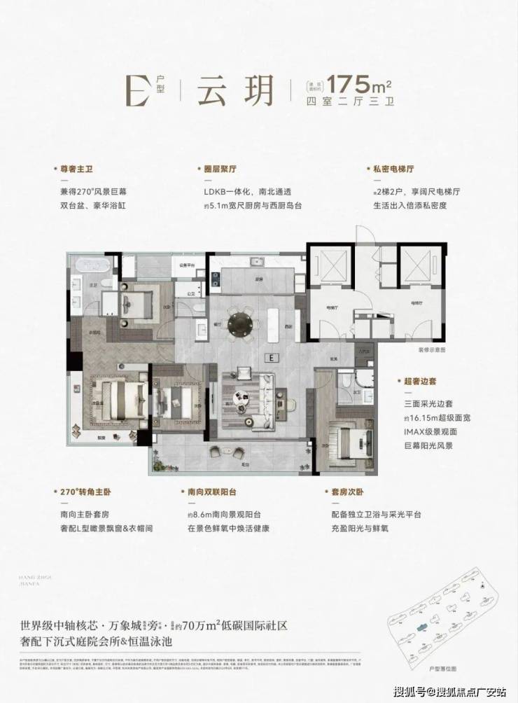 均价 / 总价:精装限价36100 元 /㎡(含 4000 元 /㎡精装);577 万起(105㎡),主力 105-239㎡,终极改善 199-239㎡