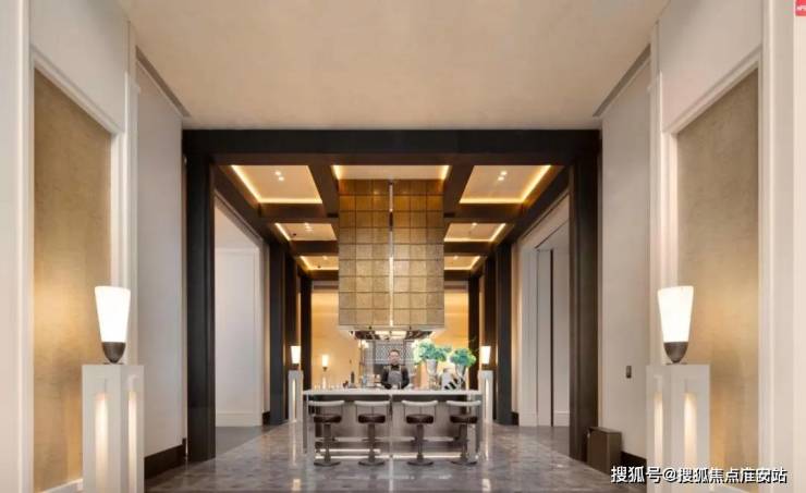 建面约190㎡C户型,两梯两户,私享梯厅,家的玄关尺度,延伸至电梯厅,增加实际使用面积。入户处大师定制瓷板门牌画,私属感满满,打造专属归家仪制。