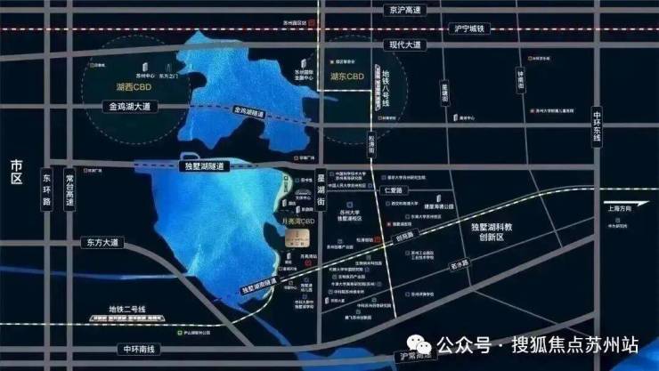 毗邻独墅湖隧道、独墅湖南隧道、中环南线