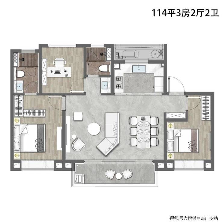 ③建面约114㎡3房2厅2卫,升级三房,更多空间!
