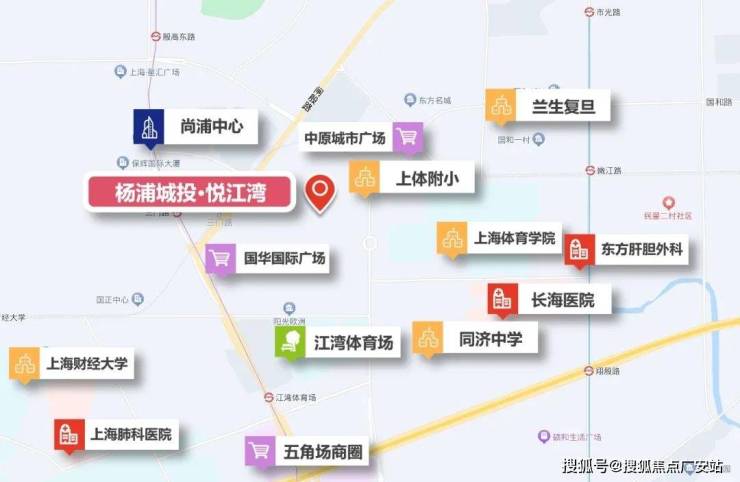 买房置业,首要考虑的就是居住品质和满足生活所需问题,抛开项目自身产品不谈,地段和配套就是置业者的首要考虑, 杨浦城投·悦江湾约1公里直达五角场核心商圈,2公里范围内尽享板块内丰富的交通、商办、教育及医疗资源,就周边配套量级和等级而言,在近两个批次新盘项目中,堪称碾压般存在。