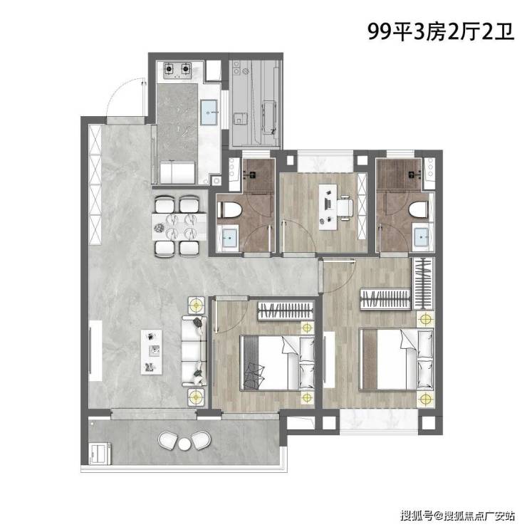 ①建面约99㎡3房2厅2卫,完美户型,更低总价!