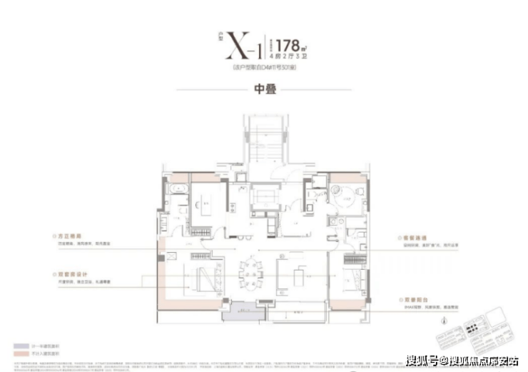 中平户型以四开间朝南的IMAX级采光面,打造出堪比市区豪宅的尺度感。4房4飘窗2阳台的设计,配合双套房布局,一共有三个套房,让每个家庭成员都享有独立私密空间。