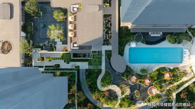 正是绿城首度落地的3.0泳池综合体。这一空间位于社区核心,归家必经之路上,融合中心泳池、林下客厅、卡座与廊架,成为串联生活场景的视觉与功能中心。与立体水院动静相衬,约34米泳池深浅分区,满足孩童嬉戏与成人畅游。池畔一侧为健身区,一侧为书吧,运动挥汗与静心阅读和谐并存,让身心各得其所。