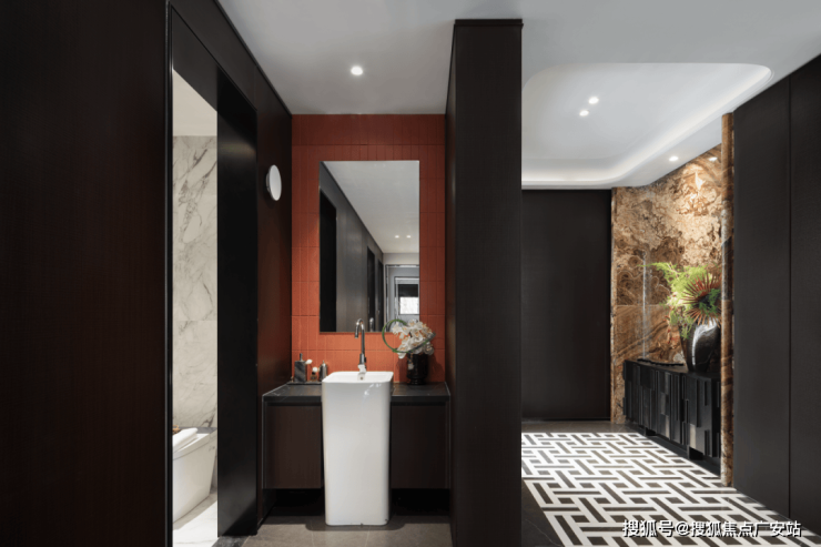 卫生间以深邃的复古黑调为基底