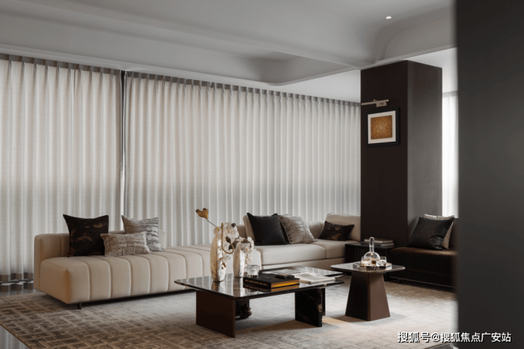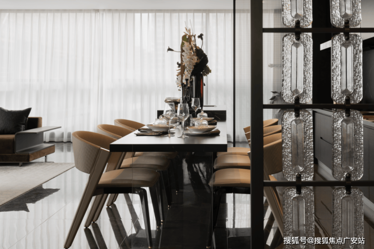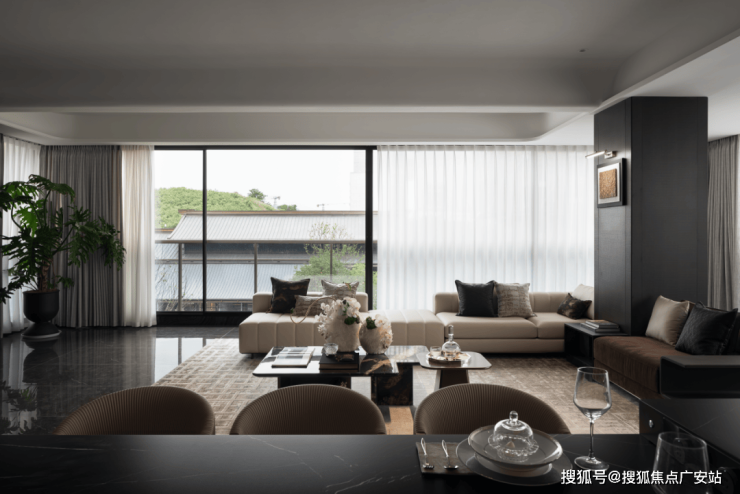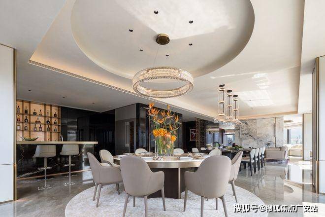 户型设计:双主卧套房、中西双厨,得房率超85%,获日本IDPA国际设计金奖,空间可灵活改造为会客厅或私宴区