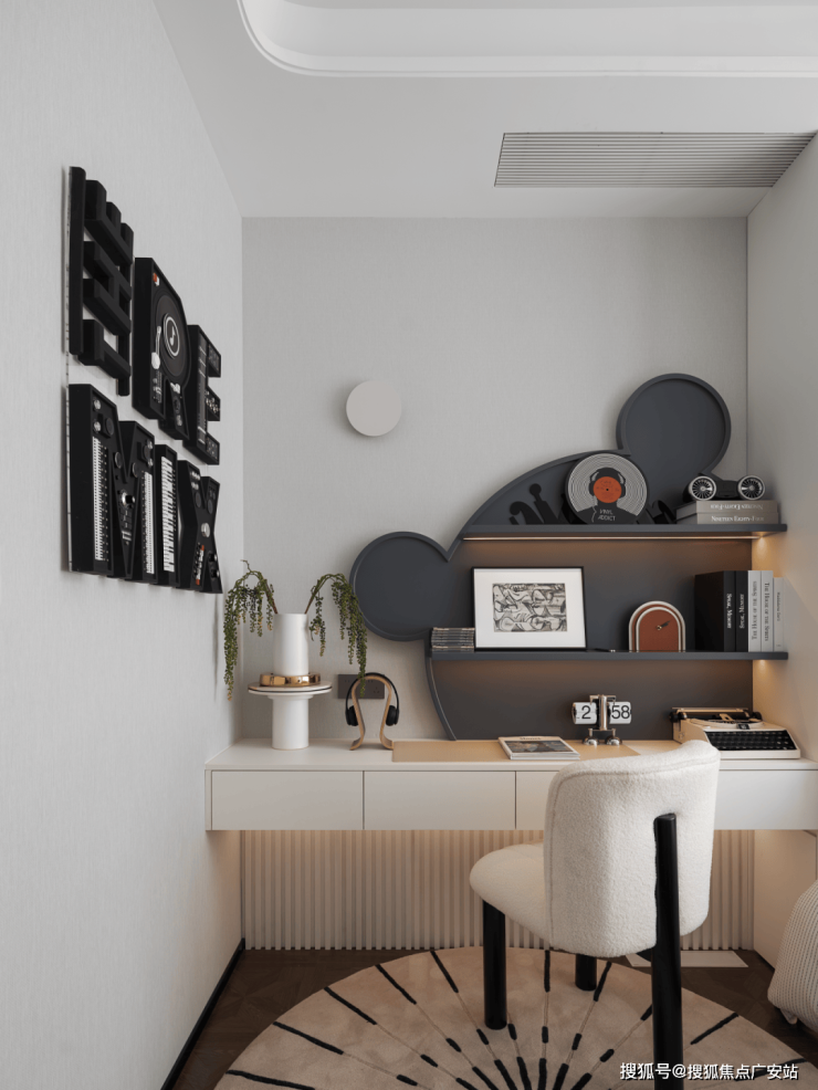 米老鼠造型的收纳架则与书桌组合