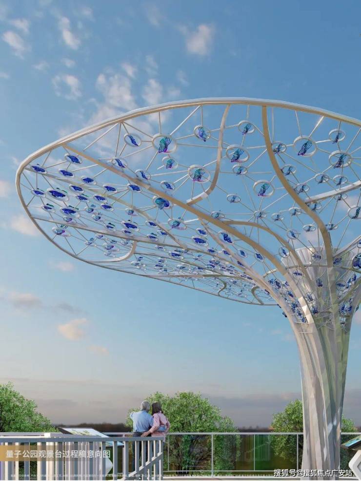 不同于普通社区公园,量子公园以多重维度立体空间,打造了立体式二层观景台,观景节点雕塑美轮美奂,像极了elsa的裙摆,简直是大小孩、小小孩们的梦幻观礼台。