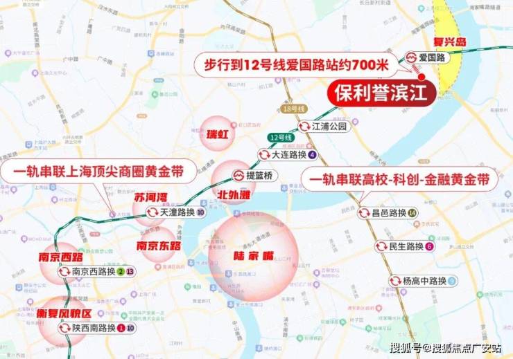 区位方面,地块距离12号线爱国路站约700米。,这是一条串联上海顶尖商圈的价值金线——直达大连路总部集群、北外滩、苏河湾、南京西路、衡复风貌区等节点,换乘几站也能快速抵达陆家嘴。靠近复兴岛运河,与东外滩滨江步道约400米左右,步行即达。