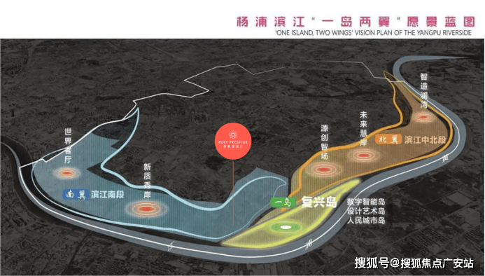 “一岛”即指复兴岛。它是黄浦江上唯一的内陆岛,也是杨浦滨江两翼发展的核心,在杨浦滨江最新规划中,指明“以复兴岛为核心,滨江中北段和南段协同联动,全力打造世界级滨水空间新典范”。作为滨江留白最多的区域,复兴岛可以说是上海科创发展最大的“秘密武器”。