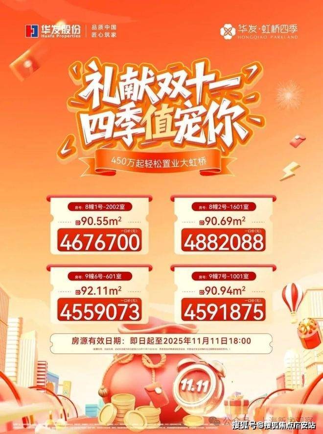 在大虹桥板块,能同时集齐 “地铁口、名校旁、全配套、国企造、高性价比” 五大核心优势的项目屈指可数。华发虹桥四季以 450 万级总价、限时 95 折特惠,为刚需及刚改家庭提供 “一步到位” 的置业选择。即刻拨打售楼处电话 400_998_7894,锁定专属优惠名额,抢占大虹桥发展红利,开启品质人居新篇章!