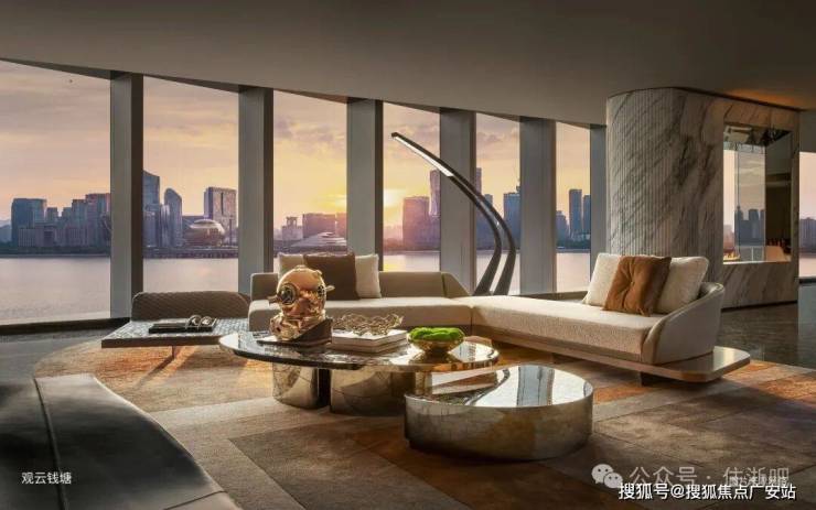 22.5米环幕横厅:客厅、餐厅一体化设计,270°全景落地窗,无遮挡俯瞰钱塘江景与城市繁华