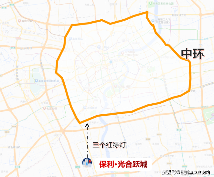 另外, 「保利·光合跃城」一脉中环的优势非常明显, 三个红绿灯即可上中环,要知道居住需求外溢的本质是拿时间换空间,凭借虹梅路高架的优势, 「保利·光合跃城」进入了上海市中心半小时通勤圈,价值环线与华泾、梅陇几乎对等!