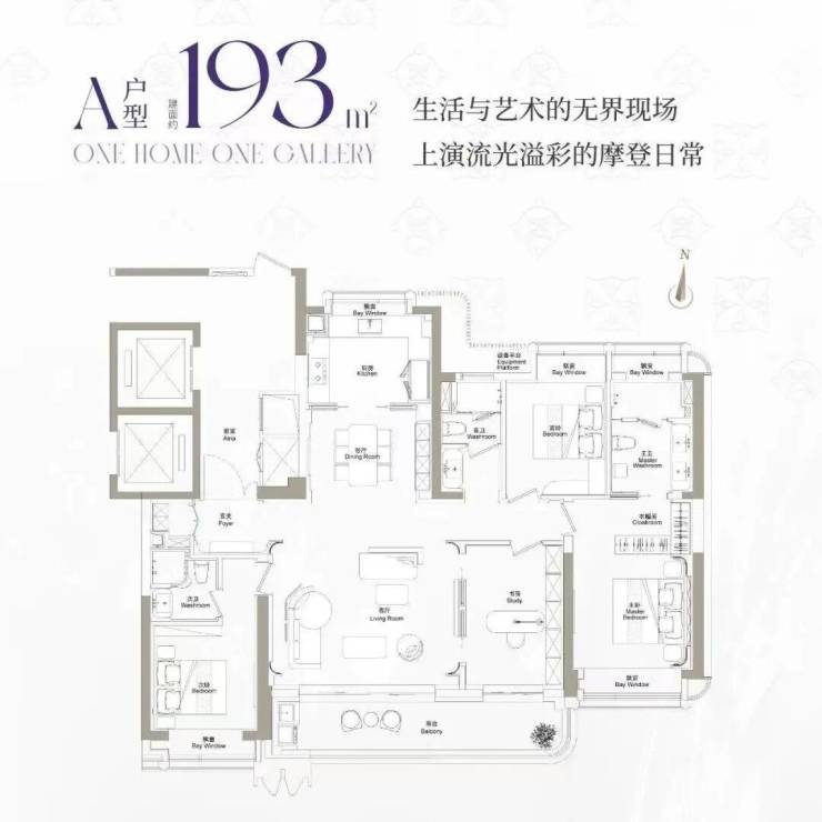 建面约193m²户型,主力总价3400万左右