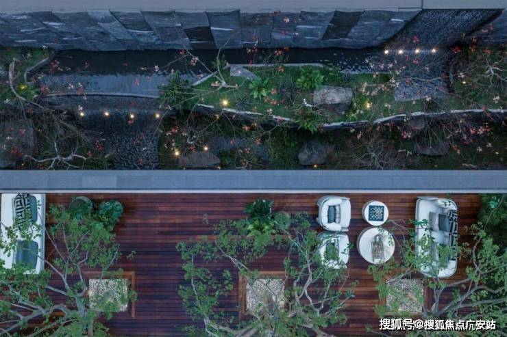 观瀑沉息作为上海内环内惟此可赏三级叠瀑的舒展之地,木栈道延伸至瀑畔,贝金米黄奢石桌面尽显从容,紫薇与朴树环伺左右,在此运动、休憩,皆能与自然同频,感受身心的放松;