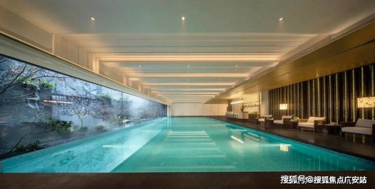 作为上海首个森林观瀑恒温无边泳池,以古驰黑奢石与非遗琉璃打造背景墙,窗外即是天然岩皮与奢石筑成的三级瀑布,羽毛枫隔窗相映,沉浸式自然观景体验拉满。