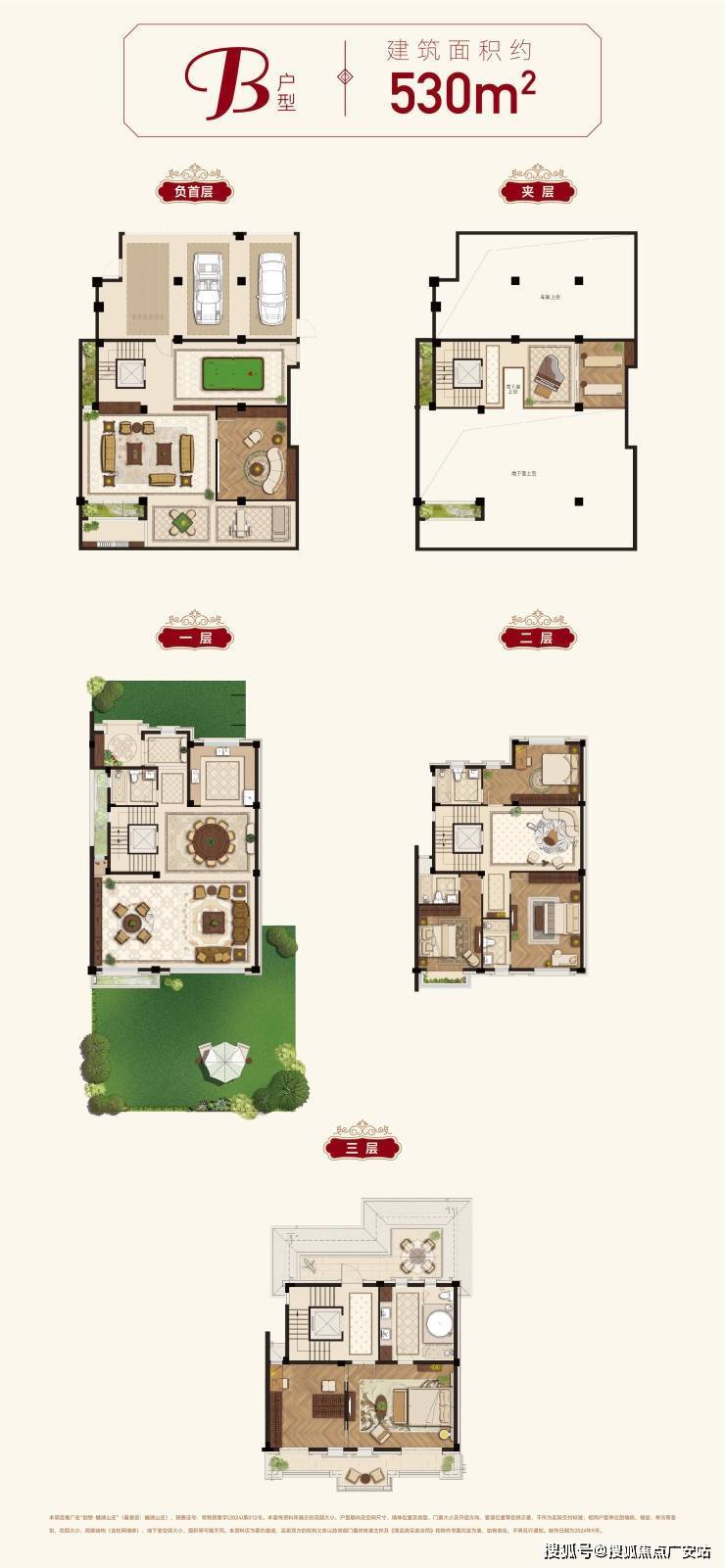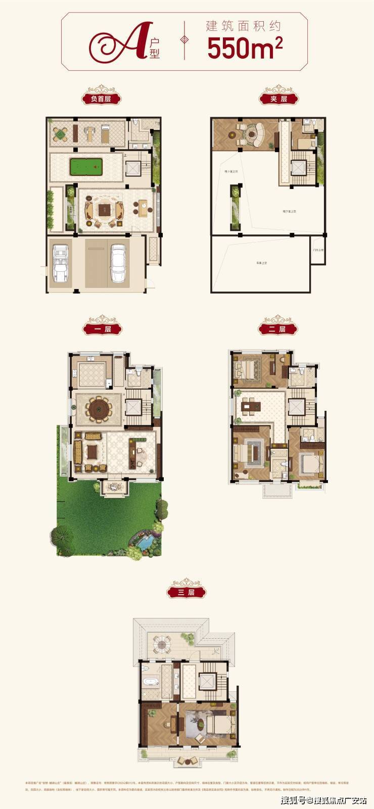 建面约480-550㎡双拼别墅,罕有双拼型制;