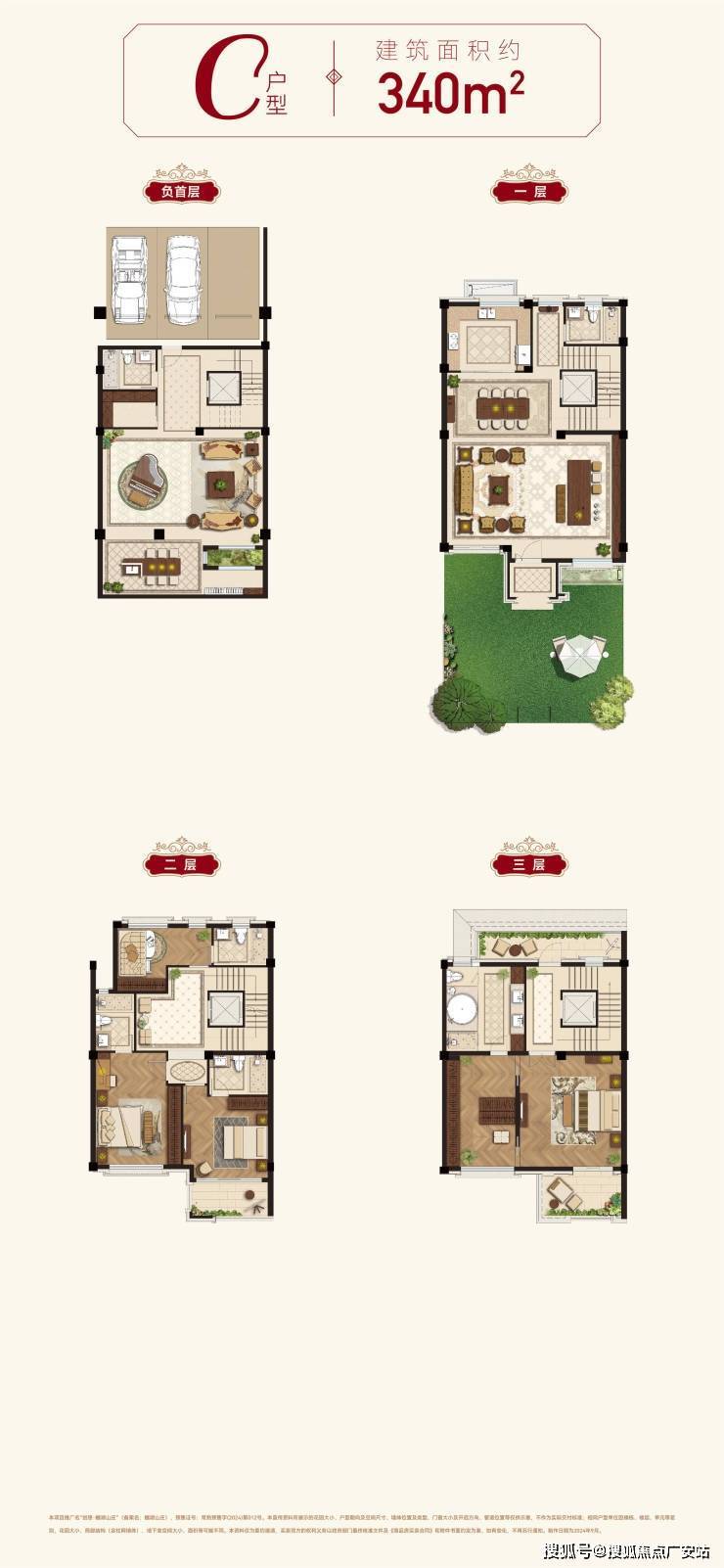 建面约310-430㎡联排别墅,私家庭院、南北双露台、大尺度地下室;
