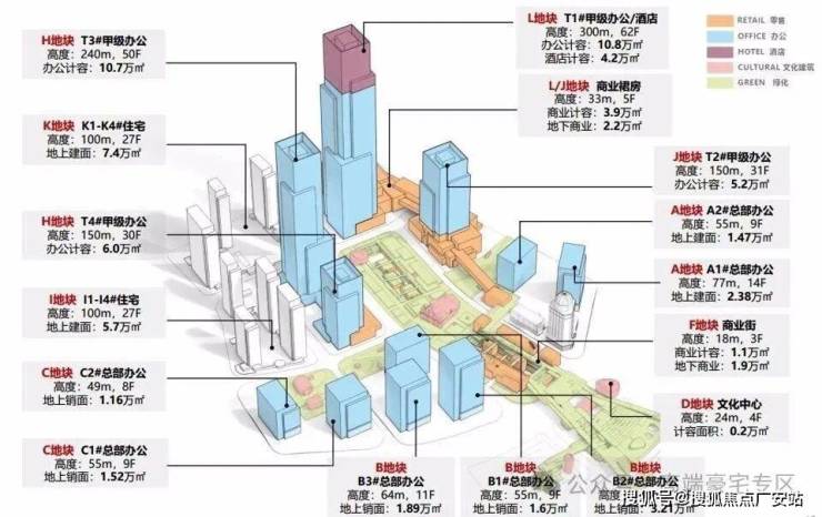 复合业态:约46万方超高层地标及高端企业总部办公楼,约17万方大型商业中心,约4.2万方星级酒店,约12万方高端住宅,约5万方公共绿化,、滨江文化休闲空间等文化功能配套。