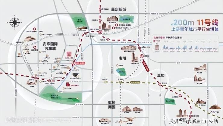 通过11号线,本项目2站即可直达嘉定新城,4站南翔印象城,11站真如副中心、17站徐家汇!