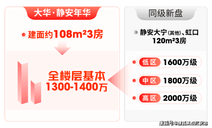 放眼整个静安区,曹家渡17万/㎡,东斯文里和苏河湾项目预计冲击20万/㎡,和大华·静安年华高层差价预计近7万/㎡。