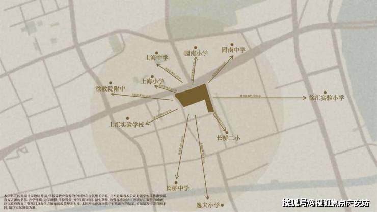 距上海“四校”之首的百年名校——上海中学直线距离仅约320米;距园南中学直线距离约650米,该校近年来中考升学成绩在徐汇区排于前列,连续三年中考区内公办第一;距公办二梯队小学园南小学直线距离约400米,对口初中即为实力不俗的园南中学;距九年一贯制上汇实验学校直线距离约500米,虽为成立于2021的新校,但作为上海中学的“亲孙子”,其影响力早已扩张开来。