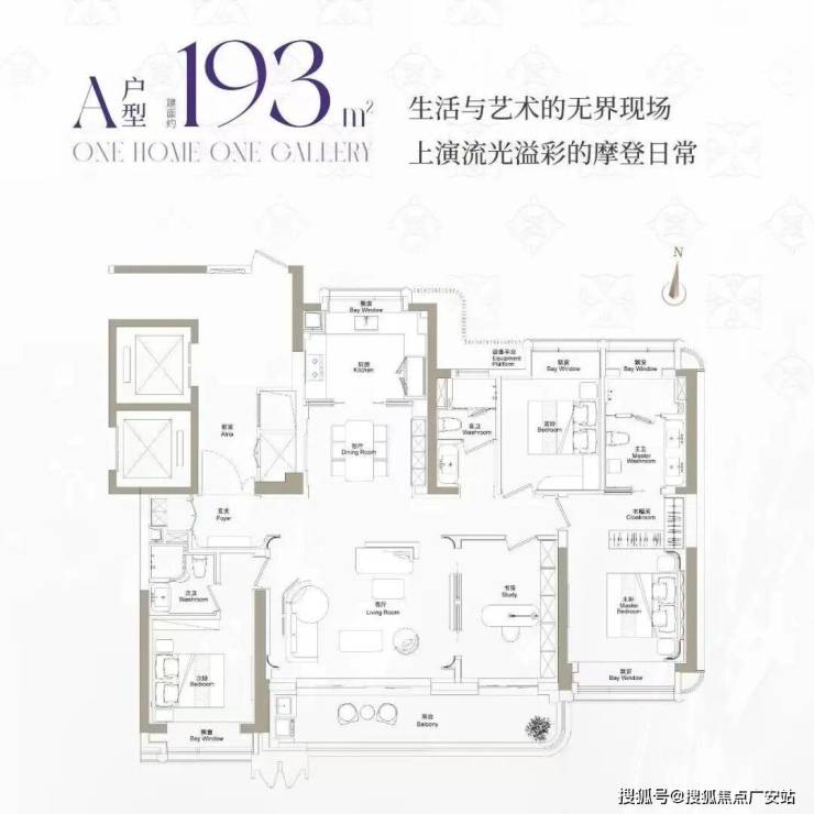 建面约193m²户型,主力总价3400万左右
