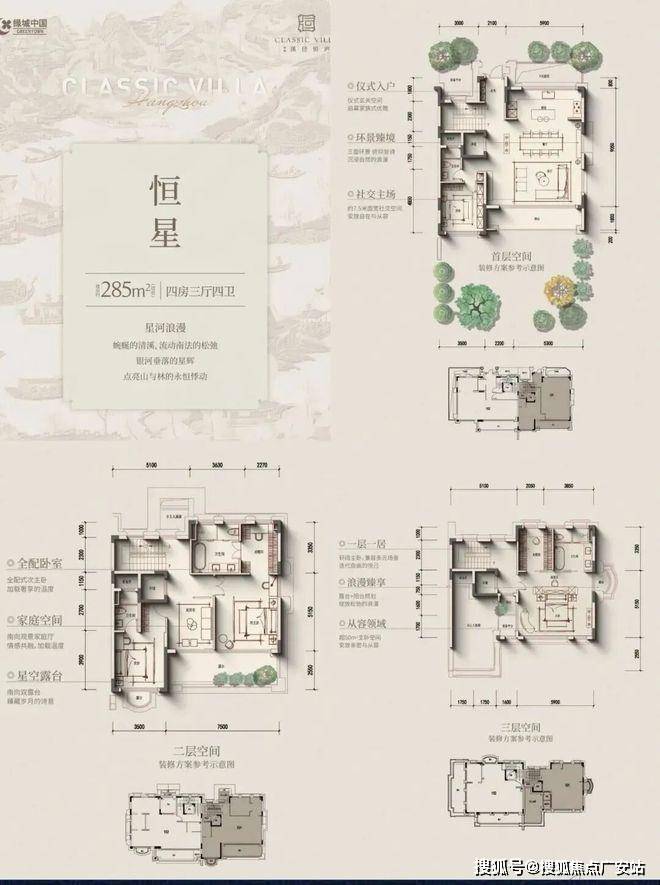 叠排产品遵循“现代形、东方意”内涵,低密产品,最主要追求的就是“有天有地,有私密感”,所以附加值的打造,变得尤其重要。所以,我们先讲的是附加值。建筑面积约235~300㎡四层庐系叠墅,