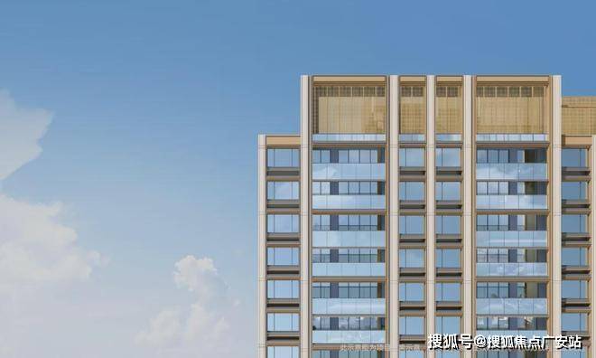 金色飘檐擦亮辨识度,南立面以大面玻璃主打,白、金、蓝灰为主调,配合部分涂料;基部用上了贝金米黄大理石,温润如月光。