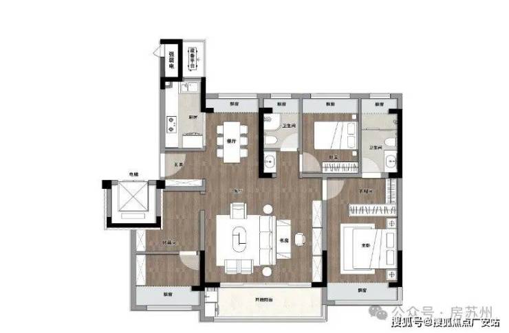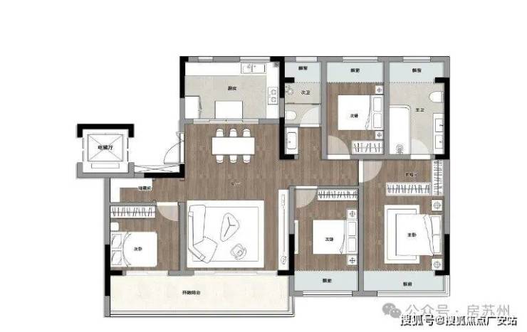 三卧四开间朝南 | 入户电梯独立空间 | 双联阔景阳台 | 超大开间厨房外接餐厅 | 主卧宽奢套房