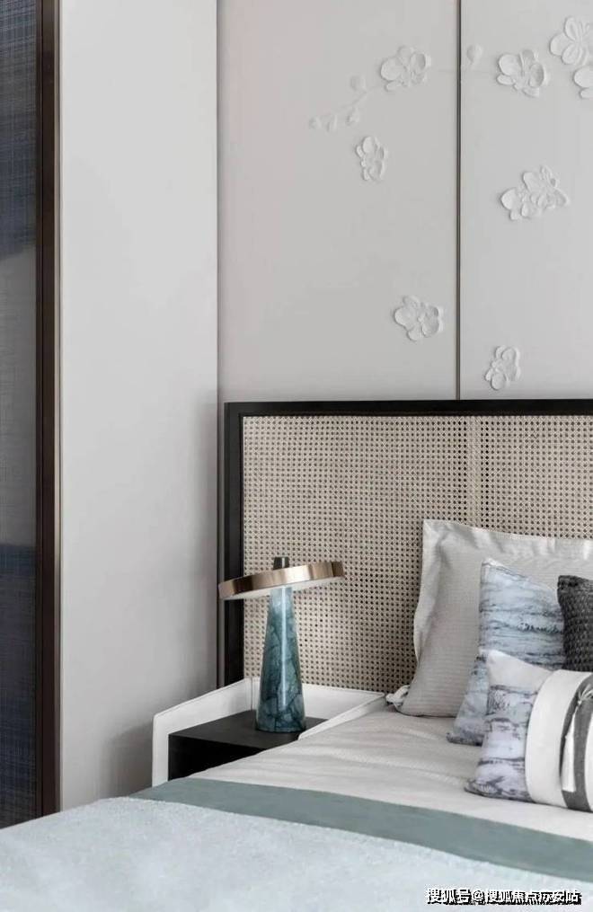 素雅的山石花瓶,还有嶙峋的中式挂画,以及香薰,都赋予了主卧满满的情调感。