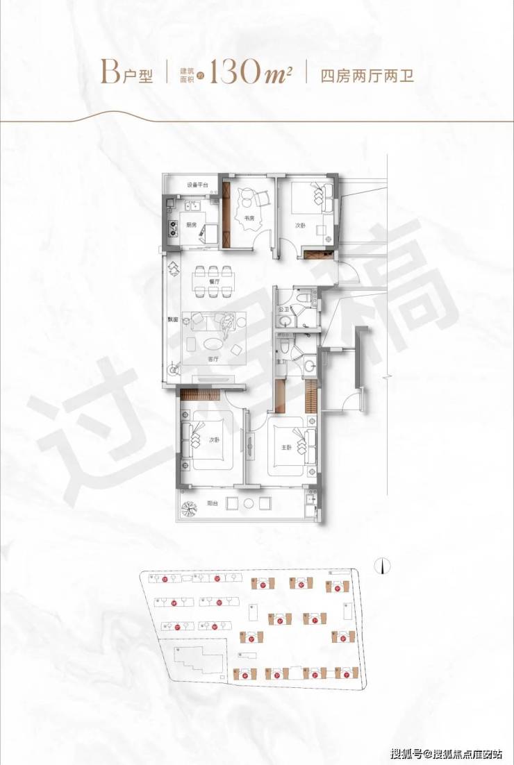 如果你想要舒适度进阶,也可以考虑边套建面约130方四房两厅两卫户型。