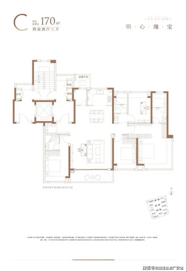 安高申陇院建面约170㎡四房两厅三卫,以突破性尺度成就区域改善之作,四房空间张弛有度,这不仅在于其房间数量,更在于对每一寸空间的规划所带来的整体舒适性与尊崇感。约79-80%的高得房率,让住宅的实际使用空间显著扩容。