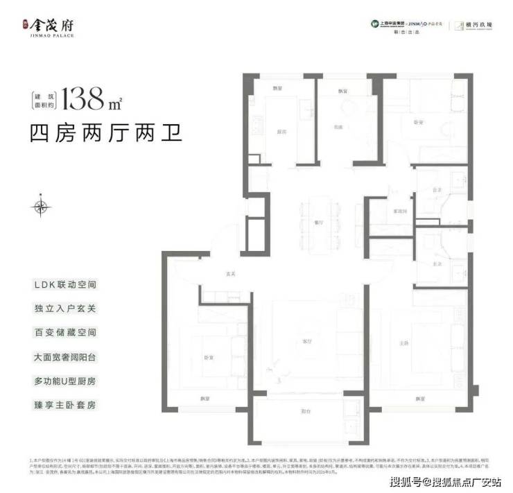 项目洋房全系无连廊设计,得房率高。如建面约138㎡户型,四叶草布局,南北通透,实得面积相当于一般高层住宅145㎡户型。除此之外,这个户型还有“真改善”不可或缺的三重优势: