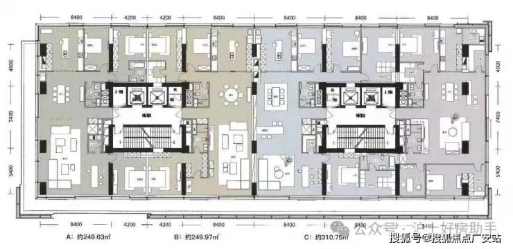 • 面 积:200.96㎡-𝟐𝟓𝟎.𝟏𝟒㎡(交付三房两厅三卫)
