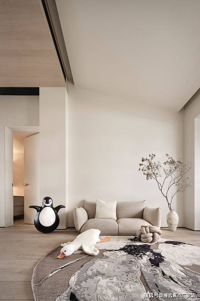 大尺度客厅保证了视野的开阔,不同物质在空间内穿插,每一处角落都是居住者的生活写照。