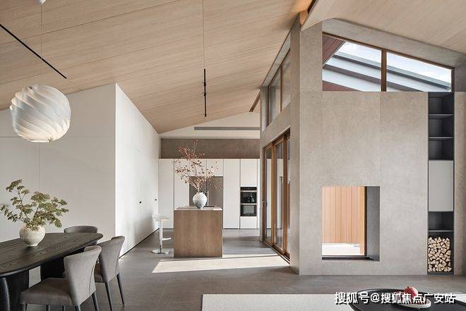厨餐厅,设计师以“过去、现在、未来”的生活场景设计功能和动线,空间不是恒定的,而是可流动的。